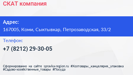 СКАТ, компания по адресу 167005, Коми, Сыктывкар, Петрозаводская, 33/2 в дальнейшем Организация, размещена в следующих категориях: