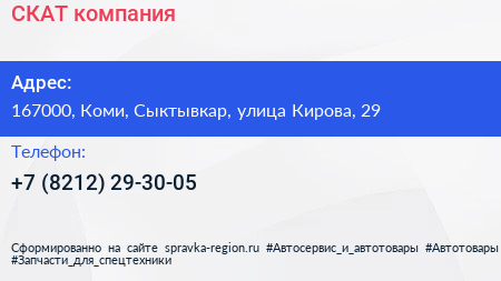 СКАТ, компания по адресу 167000, Коми, Сыктывкар, улица Кирова, 29 в дальнейшем Организация, размещена в следующих категориях: