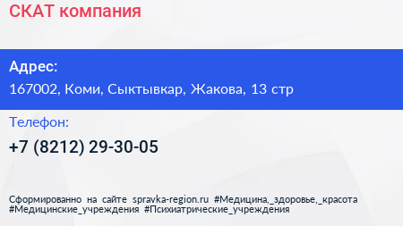 СКАТ, компания по адресу 167002, Коми, Сыктывкар, Жакова, 13 стр в дальнейшем Организация, размещена в следующих категориях: