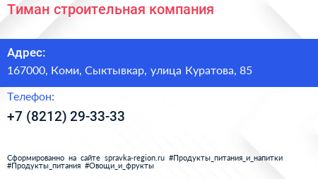 Тиман, строительная компания по адресу 167000, Коми, Сыктывкар, улица Куратова, 85 в дальнейшем Организация, размещена в следующих категориях:
