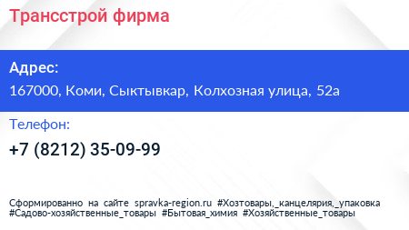 Трансстрой, фирма по адресу 167000, Коми, Сыктывкар, Колхозная улица, 52а в дальнейшем Организация, размещена в следующих категориях: