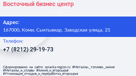 Восточный, бизнес-центр по адресу 167000, Коми, Сыктывкар, Заводская улица, 21 в дальнейшем Организация, размещена в следующих категориях: