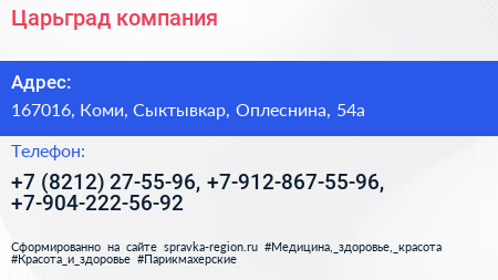 Царьград, компания по адресу 167016, Коми, Сыктывкар, Оплеснина, 54а в дальнейшем Организация, размещена в следующих категориях: