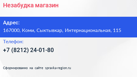 Незабудка, магазин по адресу 167000, Коми, Сыктывкар, Интернациональная, 115 в дальнейшем Организация, размещена в следующих категориях: