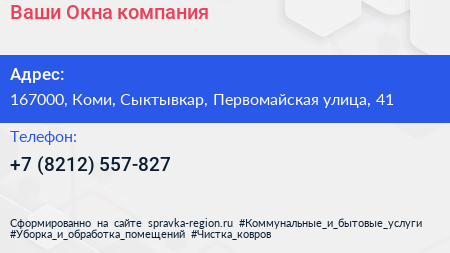 Ваши Окна, компания по адресу 167000, Коми, Сыктывкар, Первомайская улица, 41 в дальнейшем Организация, размещена в следующих категориях: