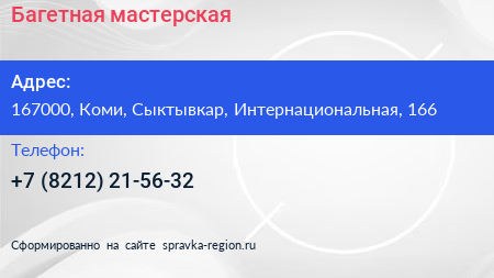 Багетная мастерская по адресу 167000, Коми, Сыктывкар, Интернациональная, 166 в дальнейшем Организация, размещена в следующих категориях: