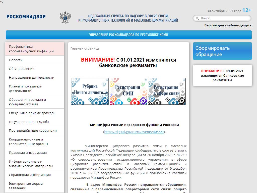 Управление Федеральной службы по надзору в сфере связи, информационных технологий и массовых коммуникаций по Республике Коми по адресу 167000, Коми, Сыктывкар, Коммунистическая улица, 17 в дальнейшем Организация, размещена в следующих категориях: