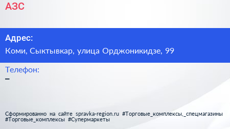 АЗС по адресу Коми, Сыктывкар, улица Орджоникидзе, 99 в дальнейшем Организация, размещена в следующих категориях: