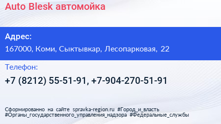 Auto Blesk, автомойка по адресу 167000, Коми, Сыктывкар, Лесопарковая, 22 в дальнейшем Организация, размещена в следующих категориях: