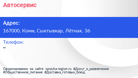 Автосервис по адресу 167000, Коми, Сыктывкар, Лётная, 36 в дальнейшем Организация, размещена в следующих категориях: