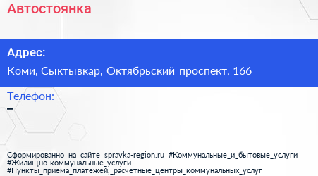 Автостоянка по адресу Коми, Сыктывкар, Октябрьский проспект, 166 в дальнейшем Организация, размещена в следующих категориях: