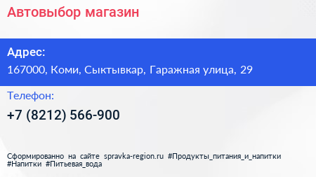 Автовыбор, магазин по адресу 167000, Коми, Сыктывкар, Гаражная улица, 29 в дальнейшем Организация, размещена в следующих категориях: