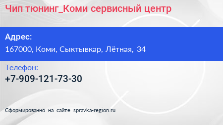 Чип-тюнинг_Коми, сервисный центр по адресу 167000, Коми, Сыктывкар, Лётная, 34 в дальнейшем Организация, размещена в следующих категориях: