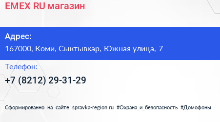 EMEX.RU, магазин по адресу 167000, Коми, Сыктывкар, Южная улица, 7 в дальнейшем Организация, размещена в следующих категориях: