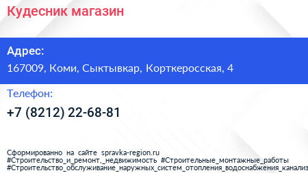 Кудесник, магазин по адресу 167009, Коми, Сыктывкар, Корткеросская, 4 в дальнейшем Организация, размещена в следующих категориях: