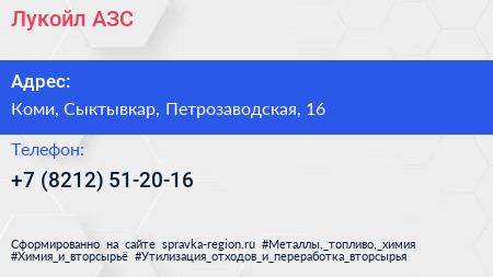 Лукойл, АЗС по адресу Коми, Сыктывкар, Петрозаводская, 16 в дальнейшем Организация, размещена в следующих категориях: