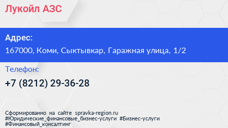 Лукойл, АЗС по адресу 167000, Коми, Сыктывкар, Гаражная улица, 1/2 в дальнейшем Организация, размещена в следующих категориях: