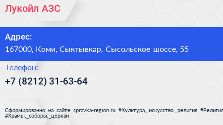 Лукойл, АЗС по адресу 167000, Коми, Сыктывкар, Сысольское шоссе, 55 в дальнейшем Организация, размещена в следующих категориях: