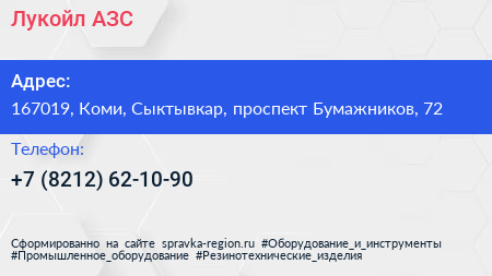 Лукойл, АЗС по адресу 167019, Коми, Сыктывкар, проспект Бумажников, 72 в дальнейшем Организация, размещена в следующих категориях: