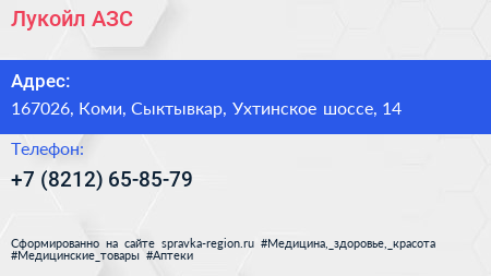 Лукойл, АЗС по адресу 167026, Коми, Сыктывкар, Ухтинское шоссе, 14 в дальнейшем Организация, размещена в следующих категориях: