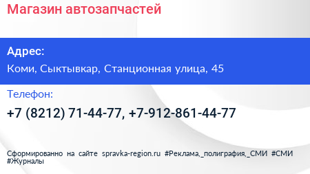 Магазин автозапчастей по адресу Коми, Сыктывкар, Станционная улица, 45 в дальнейшем Организация, размещена в следующих категориях: