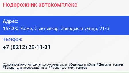 Подорожник, автокомплекс по адресу 167000, Коми, Сыктывкар, Заводская улица, 21/3 в дальнейшем Организация, размещена в следующих категориях: