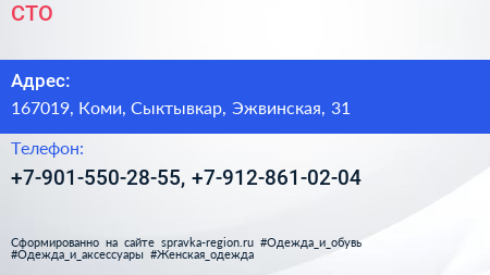 СТО по адресу 167019, Коми, Сыктывкар, Эжвинская, 31 в дальнейшем Организация, размещена в следующих категориях: