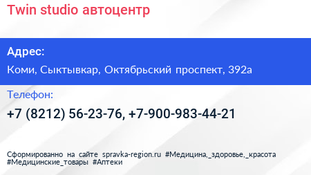 Twin studio, автоцентр по адресу Коми, Сыктывкар, Октябрьский проспект, 392а в дальнейшем Организация, размещена в следующих категориях:
