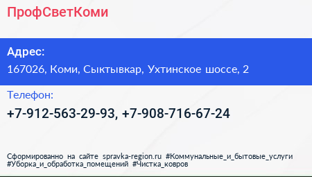 ПрофСветКоми по адресу 167026, Коми, Сыктывкар, Ухтинское шоссе, 2 в дальнейшем Организация, размещена в следующих категориях: