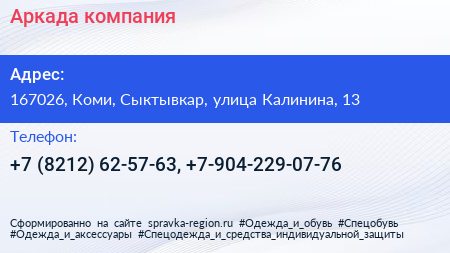 Аркада, компания по адресу 167026, Коми, Сыктывкар, улица Калинина, 13 в дальнейшем Организация, размещена в следующих категориях: