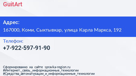 GuitArt по адресу 167000, Коми, Сыктывкар, улица Карла Маркса, 192 в дальнейшем Организация, размещена в следующих категориях: