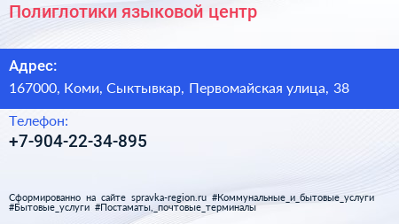 Полиглотики, языковой центр по адресу 167000, Коми, Сыктывкар, Первомайская улица, 38 в дальнейшем Организация, размещена в следующих категориях: