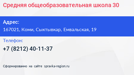Средняя общеобразовательная школа №30 по адресу 167021, Коми, Сыктывкар, Емвальская, 19 в дальнейшем Организация, размещена в следующих категориях: