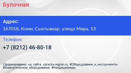 Булочная по адресу 167018, Коми, Сыктывкар, улица Мира, 13 в дальнейшем Организация, размещена в следующих категориях: