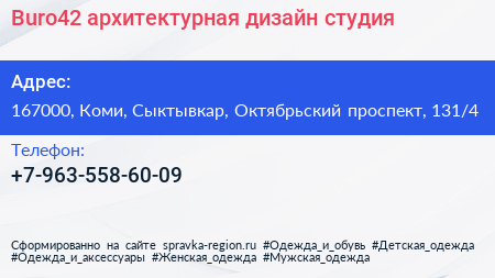 Buro42, архитектурная дизайн-студия по адресу 167000, Коми, Сыктывкар, Октябрьский проспект, 131/4 в дальнейшем Организация, размещена в следующих категориях: