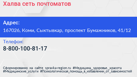 Халва, сеть почтоматов по адресу 167026, Коми, Сыктывкар, проспект Бумажников, 41/12 в дальнейшем Организация, размещена в следующих категориях: