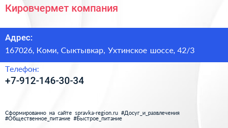 Кировчермет, компания по адресу 167026, Коми, Сыктывкар, Ухтинское шоссе, 42/3 в дальнейшем Организация, размещена в следующих категориях: