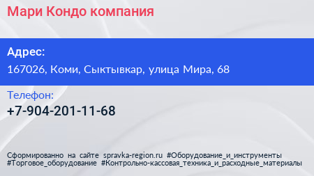Мари Кондо, компания по адресу 167026, Коми, Сыктывкар, улица Мира, 68 в дальнейшем Организация, размещена в следующих категориях: