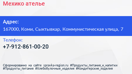 Мехико, ателье по адресу 167000, Коми, Сыктывкар, Коммунистическая улица, 7 в дальнейшем Организация, размещена в следующих категориях: