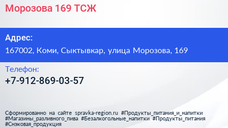 Морозова 169, ТСЖ по адресу 167002, Коми, Сыктывкар, улица Морозова, 169 в дальнейшем Организация, размещена в следующих категориях: