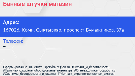 Банные штучки, магазин по адресу 167026, Коми, Сыктывкар, проспект Бумажников, 37а в дальнейшем Организация, размещена в следующих категориях: