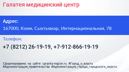 Галатея, медицинский центр по адресу 167000, Коми, Сыктывкар, Интернациональная, 78 в дальнейшем Организация, размещена в следующих категориях: