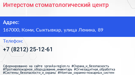 Интерстом, стоматологический центр по адресу 167000, Коми, Сыктывкар, улица Ленина, 89 в дальнейшем Организация, размещена в следующих категориях: