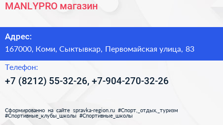 MANLYPRO, магазин по адресу 167000, Коми, Сыктывкар, Первомайская улица, 83 в дальнейшем Организация, размещена в следующих категориях: