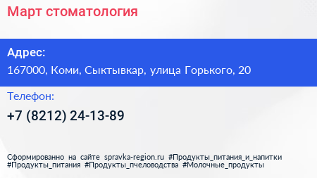 Март, стоматология по адресу 167000, Коми, Сыктывкар, улица Горького, 20 в дальнейшем Организация, размещена в следующих категориях: