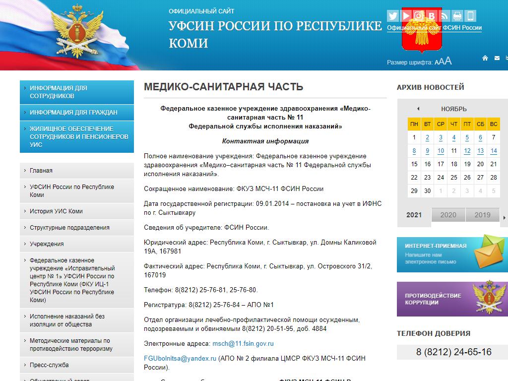 Медико-санитарная часть №11 Федеральной службы исполнения наказания по адресу Коми, Сыктывкар, улица Островского, 31/2 в дальнейшем Организация, размещена в следующих категориях: