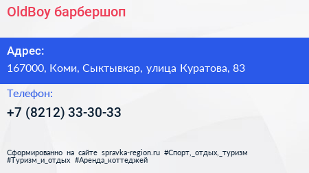 OldBoy, барбершоп по адресу 167000, Коми, Сыктывкар, улица Куратова, 83 в дальнейшем Организация, размещена в следующих категориях: