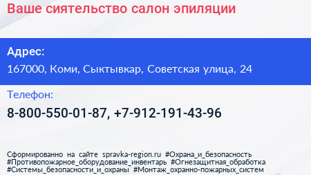 Ваше сиятельство, салон эпиляции по адресу 167000, Коми, Сыктывкар, Советская улица, 24 в дальнейшем Организация, размещена в следующих категориях: