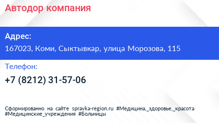 Автодор, компания по адресу 167023, Коми, Сыктывкар, улица Морозова, 115 в дальнейшем Организация, размещена в следующих категориях: