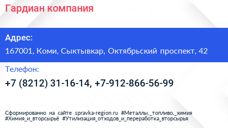 Гардиан, компания по адресу 167001, Коми, Сыктывкар, Октябрьский проспект, 42 в дальнейшем Организация, размещена в следующих категориях: